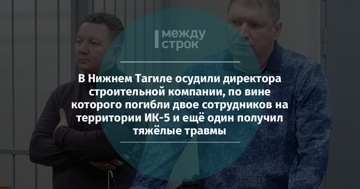 В Нижнем Тагиле осудили директора строительной компании, по вине которого погибли двое сотрудников на территории ИК-5 и ещё один получил тяжёлые травмы