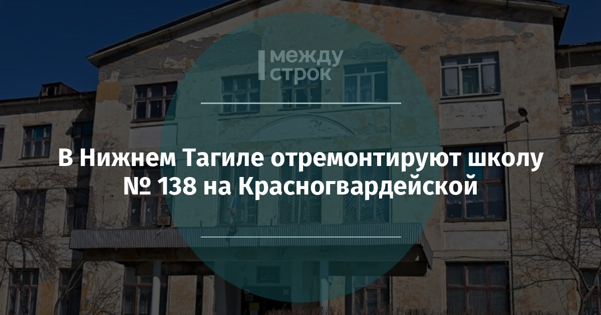 Нижний Тагил официально прошёл конкурсный отбор и получит областную субсидию на капитальный ремонт школы № 138, расположенной по адресу Красногвардейская, 1. Об этом в своих социальных сетях сообщил глава города Владислав Пинаев.