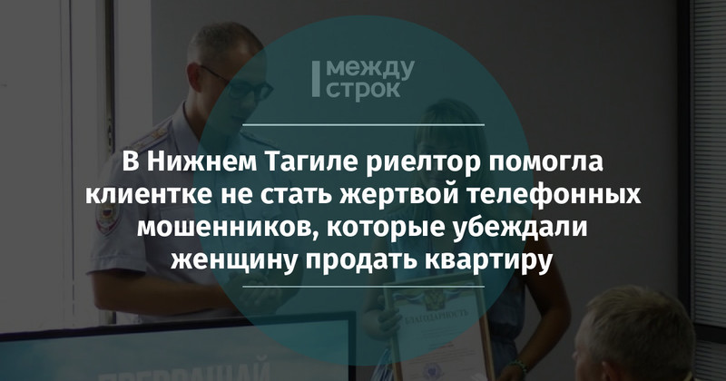 Как сообщает пресс-группа МУ МВД России «Нижнетагильское», сотрудница агентства недвижимости Юлия Николашина помогла клиентке не попасться на уловки мошенников. Специалист заметила, что женщина вела себя не совсем адекватно при обсуждении сделки и постоянно смотрела в телефон. Это насторожило Юлию, и она сообщила об этом своему руководителю, который обратился в полицию.