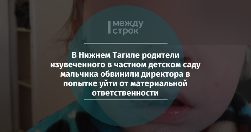 8 февраля сразу в нескольких тагильских пабликах во «ВКонтакте» появились посты об инциденте с маленьким мальчиком в частном детском саду на улице Керамиков в Нижнем Тагиле. Происшествие случилось в марте 2020 года: ребёнок поскользнулся на разлитом на полу компоте и упал лицом на разбитую посуду, сильно поранив щёку. Руководитель детсада позвонила родителям и в скорую помощь.