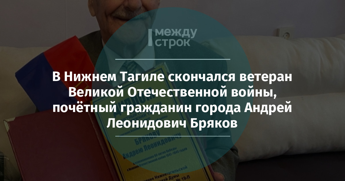 Вечером 3 марта в Нижнем Тагиле на 99-м году жизни скончался ветеран Великой Отечественной войны, почётный гражданин города Андрей Леонидович Бряков.