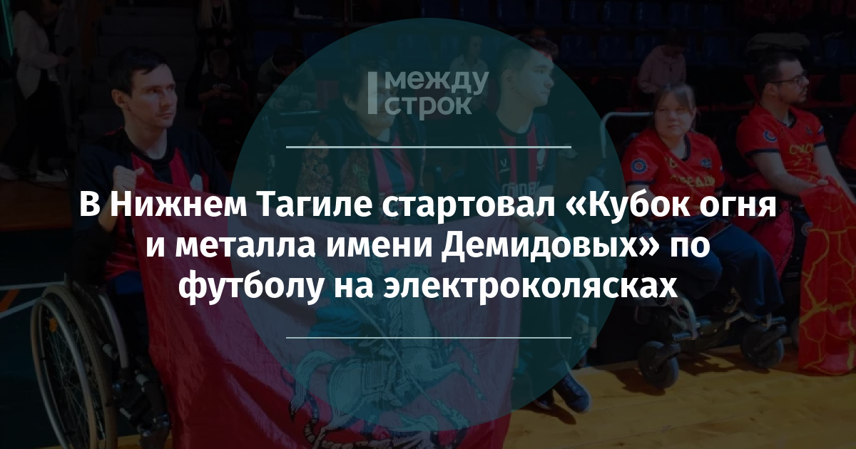 В Нижнем Тагиле стартовал «Кубок огня и металла имени Демидовых» (0+) по футболу на электроколясках. В течение трёх дней в физкультурно-оздоровительном комплексе «Президентский» за кубок будут бороться 7 команд, в том числе 2 команды из Нижнего Тагила — «Шаг вперёд» и «Шаг вперёд – 2», а также команды из Омска, Ленинградской и Московской области, Каменска-Уральского, Москвы и Казани.