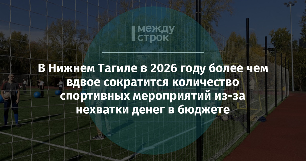 В Нижнем Тагиле в 2026 году более чем вдвое сократится количество спортивных мероприятий. Если в прошлом году провели 641 турнир, то в этом запланировали лишь 271. Сокращения в первую очередь затронут профессиональных спортсменов и воспитанников спортшкол, так как именно календарь городских чемпионатов и соревнований был урезан в значительной степени. Как сообщает ИА «Все новости» со ссылкой на начальника управления по развитию физкультуры и спорта Ирину Еремееву, это напрямую связано с резким сокращением бюджета. В 2025 году на проведение соревнований было выделено 13,9 млн рублей, а в 2026 — только 3,9 млн рублей, что в 3,5 раза меньше.