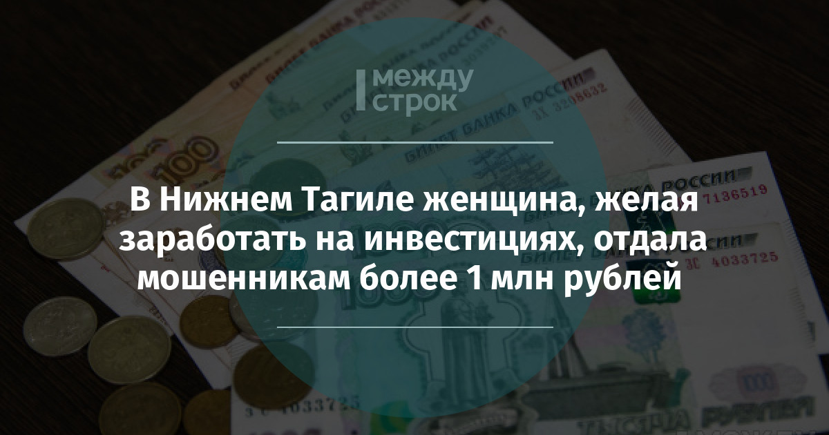 В отдел полиции № 17 Нижнего Тагила поступило заявление от жительницы города, ставшей жертвой мошенников. Как сообщает пресс-группа МУ МВД России «Нижнетагильское», тагильчанка, желая заработать на инвестициях, отдала злоумышленникам более 1 млн рублей.