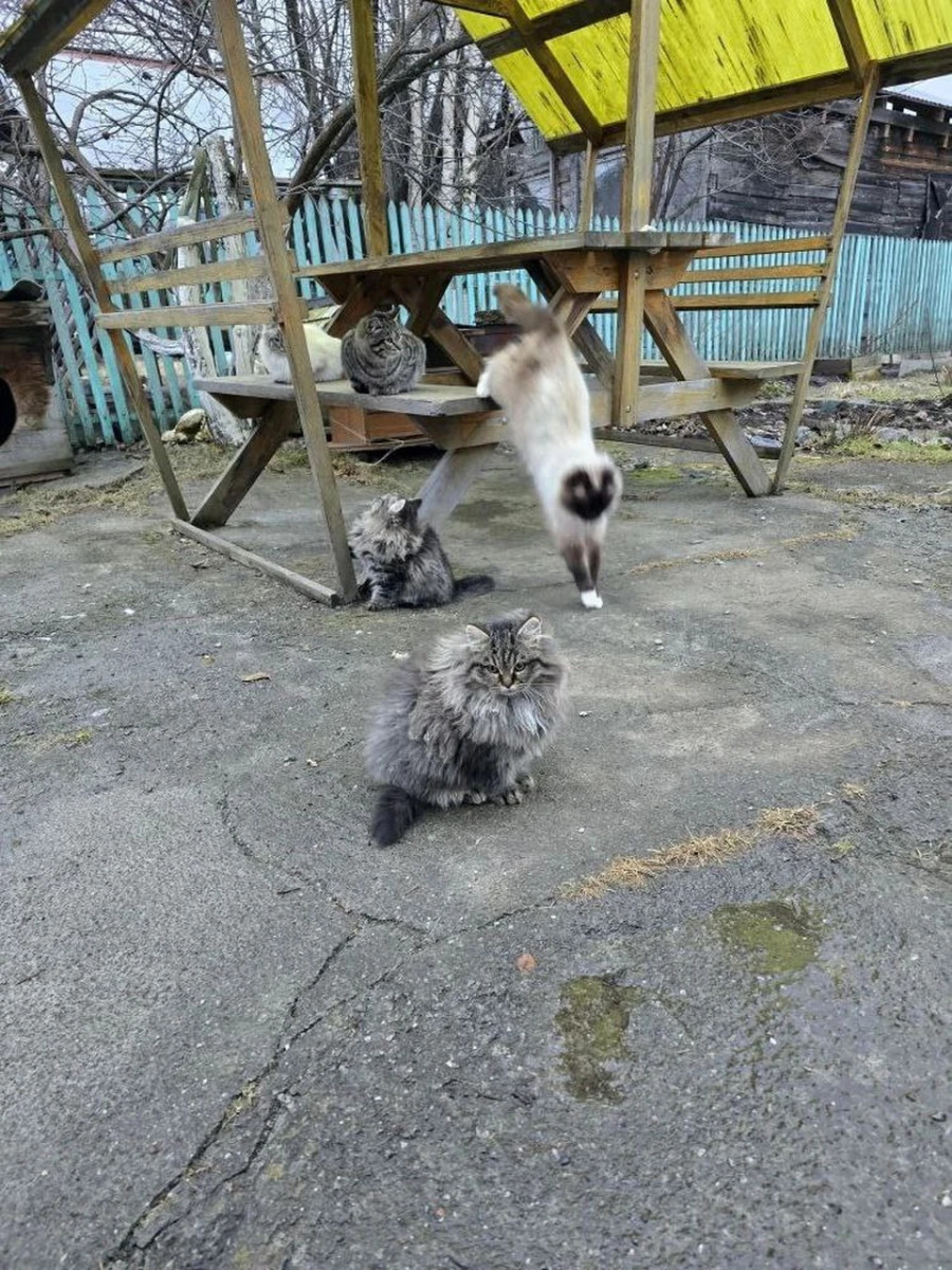 По словам местной жительницы Ирины, сначала питомцев было несколько, однако летом они размножились, и котята стали заселять прилегающий к её дому участок. В сам дом периодически приезжает сын покойного мужчины, который животных в дом не пускает. Несмотря на то, что кошки провели зиму на веранде, внешне они выглядят здоровыми.