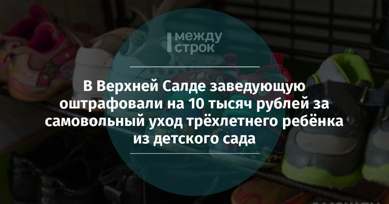 Верхнесалдинская городская прокуратура провела проверку о по факту самовольного ухода из детского сада 3-летнего мальчика и оштрафовала на 10 тысяч рублей заведующую дошкольного учреждения, сообщает пресс-служба прокуратуры Свердловской области.