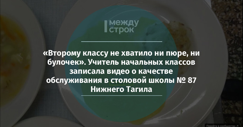 В группе «Инцидент Нижний Тагил» накануне была опубликована видеозапись, на которой учительница школы № 87 сообщает о недостатке обеденных порций для учеников 2-х и 3-х классов.
