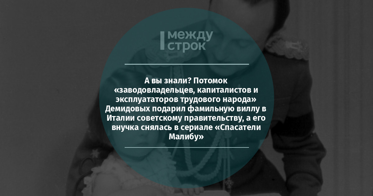 А вы знали? Потомок «заводовладельцев, капиталистов и эксплуататоров трудового народа» Демидовых подарил фамильную виллу в Италии советскому правительству, а его внучка снялась в сериале «Спасатели Малибу»