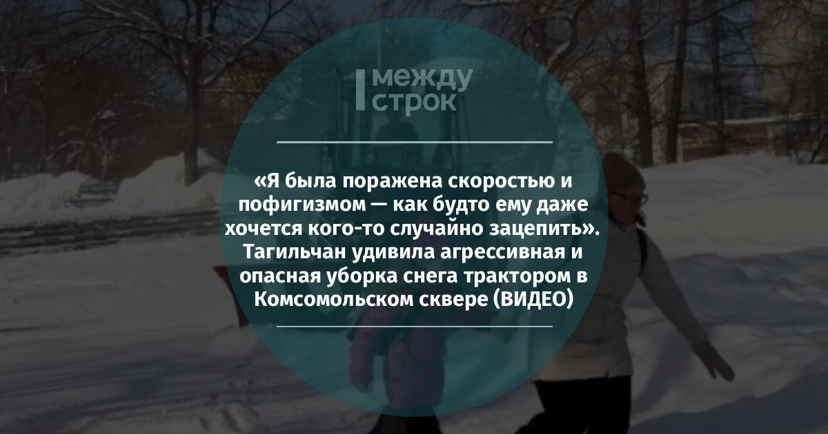 «Я шла по парку, и он вдруг погнал за мной. Я решила постоять и сняла это, потому что понимала, что других прохожих ждёт та же участь. Жаль, что я прервала видео. Он тогда затормозил, но через пару секунд он и дальше погнал за ними. Они растерялись, не понимали, куда отпрыгнуть, и побежали в сторону лестницы. Он мог поехать левее или просто сделать круг вокруг фонтана, но нет, он поехал за этими бедолагами. Все прохожие были в шоке. Я была поражена скоростью и пофигизмом — как будто ему даже хочется кого-то случайно зацепить. Этот тракторист не первый день здесь работает. Раньше я ещё смеялась, как он бодро заезжал на снежные кучи — хихикала, что Шумахер. А сегодня, видимо, решил за пешеходами погоняться, которые ему мешали», — рассказала АН «Между строк» тагильчанка.