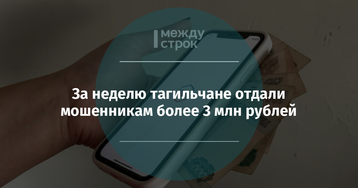 В общей сложности за неделю жители Нижнего Тагила отдали мошенникам более 3 млн рублей. В МУ МВД России «Нижнетагильское» напоминают, что сотрудники банков и госструктур не совершают звонков с предложением перевести деньги на «безопасные счета» и не направляют курьеров для изъятия наличных денег. В правоохранительных органах рекомендуют при получении подозрительных звонков сразу прерывать разговор и самостоятельно связываться с банком. Обо всех фактах мошенничества необходимо сообщать в полицию по телефону 102.