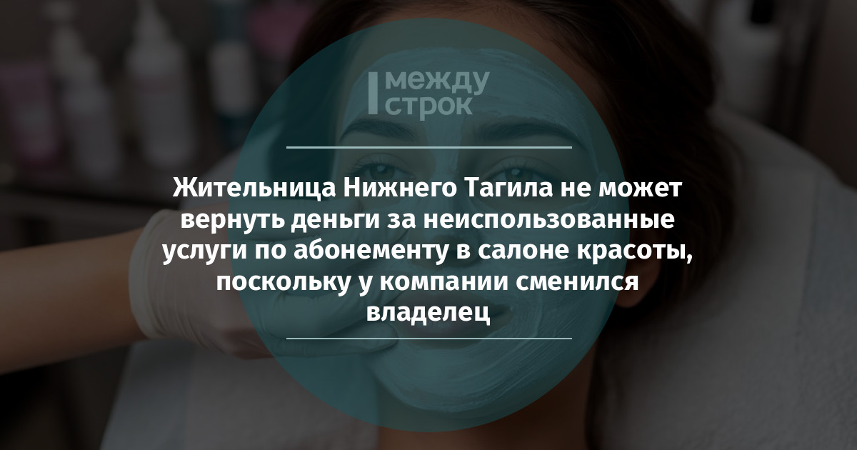 Жительница Нижнего Тагила оказалась в запутанной ситуации. Как рассказала АН «Между строк» наша читательница Екатерина, летом 2025 года она приобрела два абонемента на уход за лицом и телом в студии «Без повода». По истечении трёх месяцев срок действия сертификатов истёк, и девушка решила вернуть неиспользованные средства. Однако к этому моменту у салона сменился владелец: новый собственник отказался возвращать деньги, предложив обратиться с этим вопросом к прежнему владельцу бизнеса.