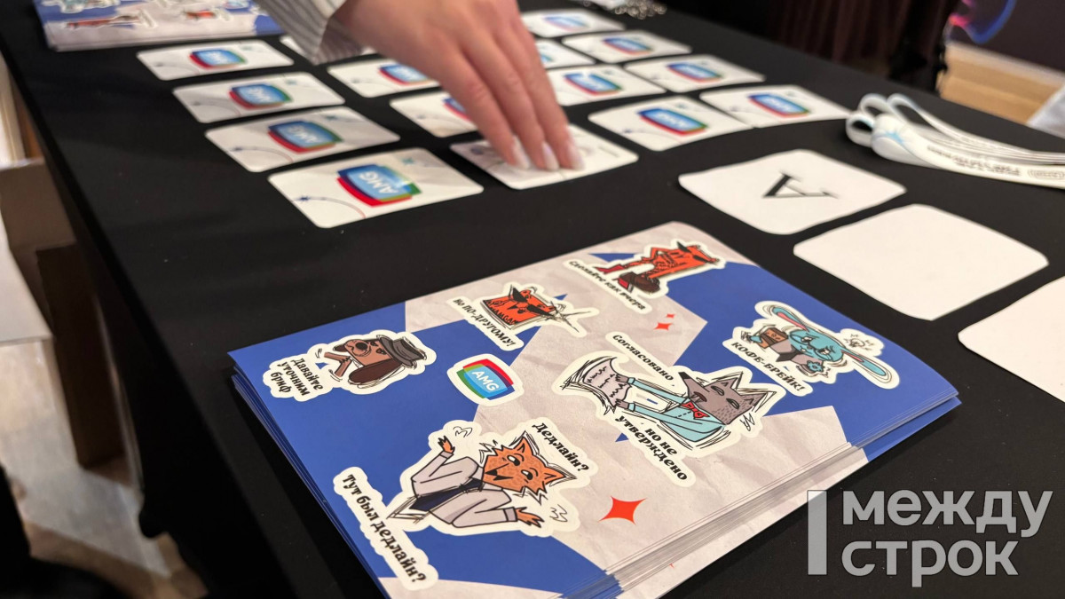 Отгадай загадку или переверни карточки — вытяни бумажку и получи фирменный приз: ручку, блокнот, банку, карандаши, брелок или наклейки.