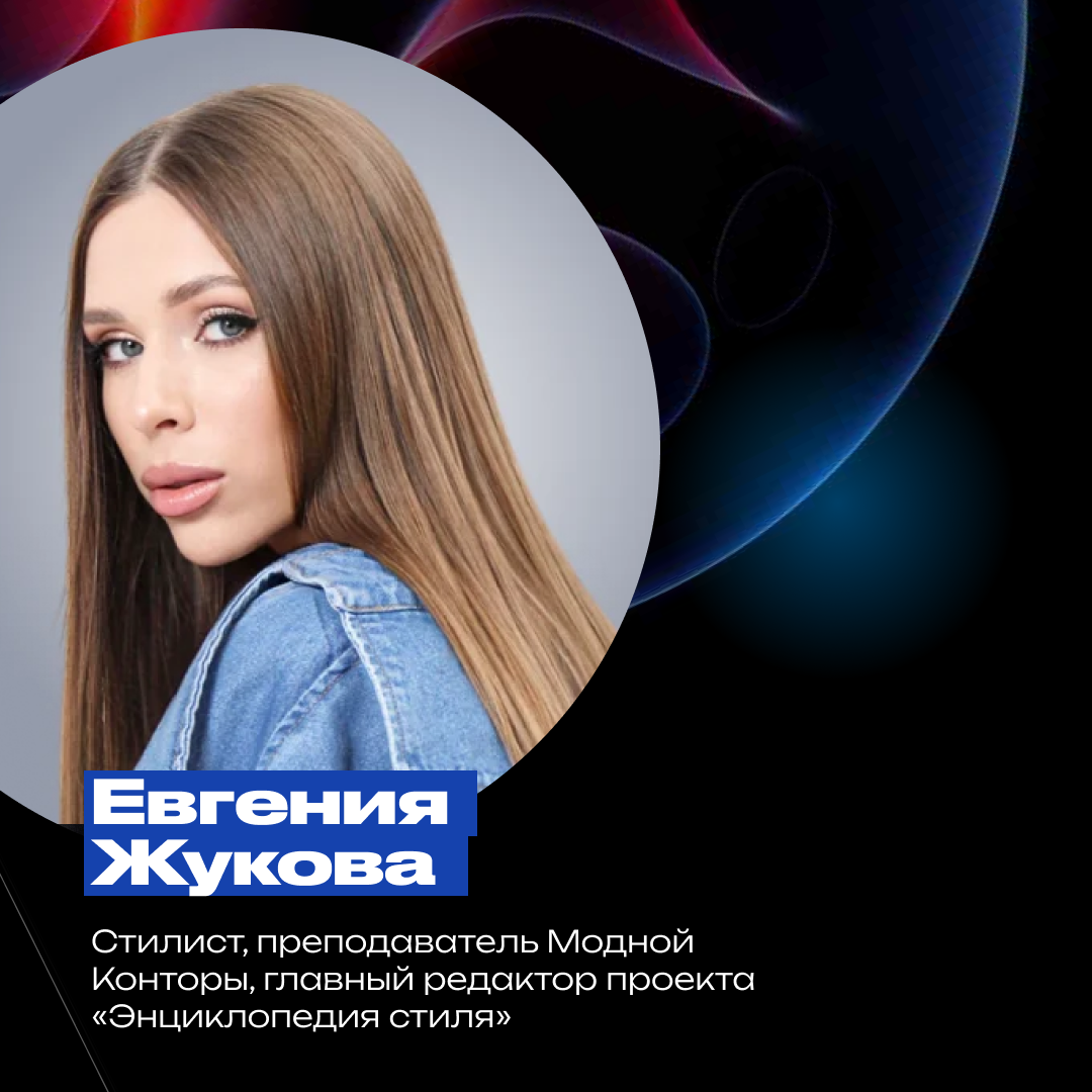 Следующий спикер — стилист, преподаватель «Модной Конторы», главный редактор проекта «Энциклопедия стиля» Евгения Жукова.
